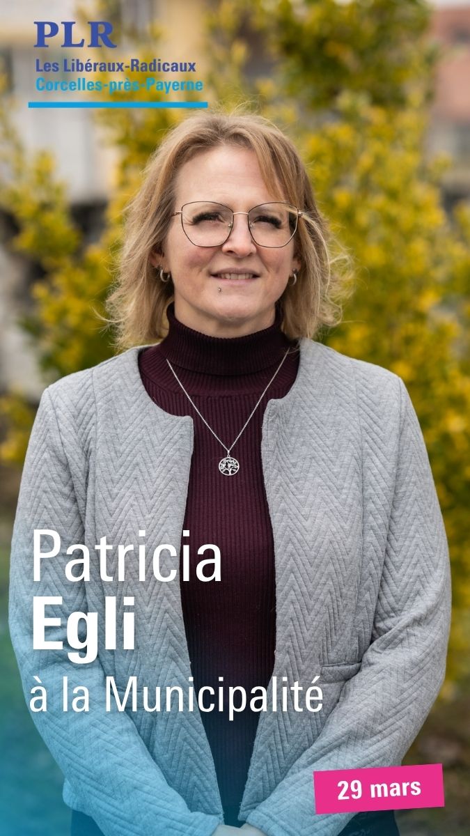 Une forte mobilisation est nécessaire ce 29 mars, afin de pouvoir faire élire Patricia Egli à la Municipalité, une candidate connue, sérieuse et expérimentée !